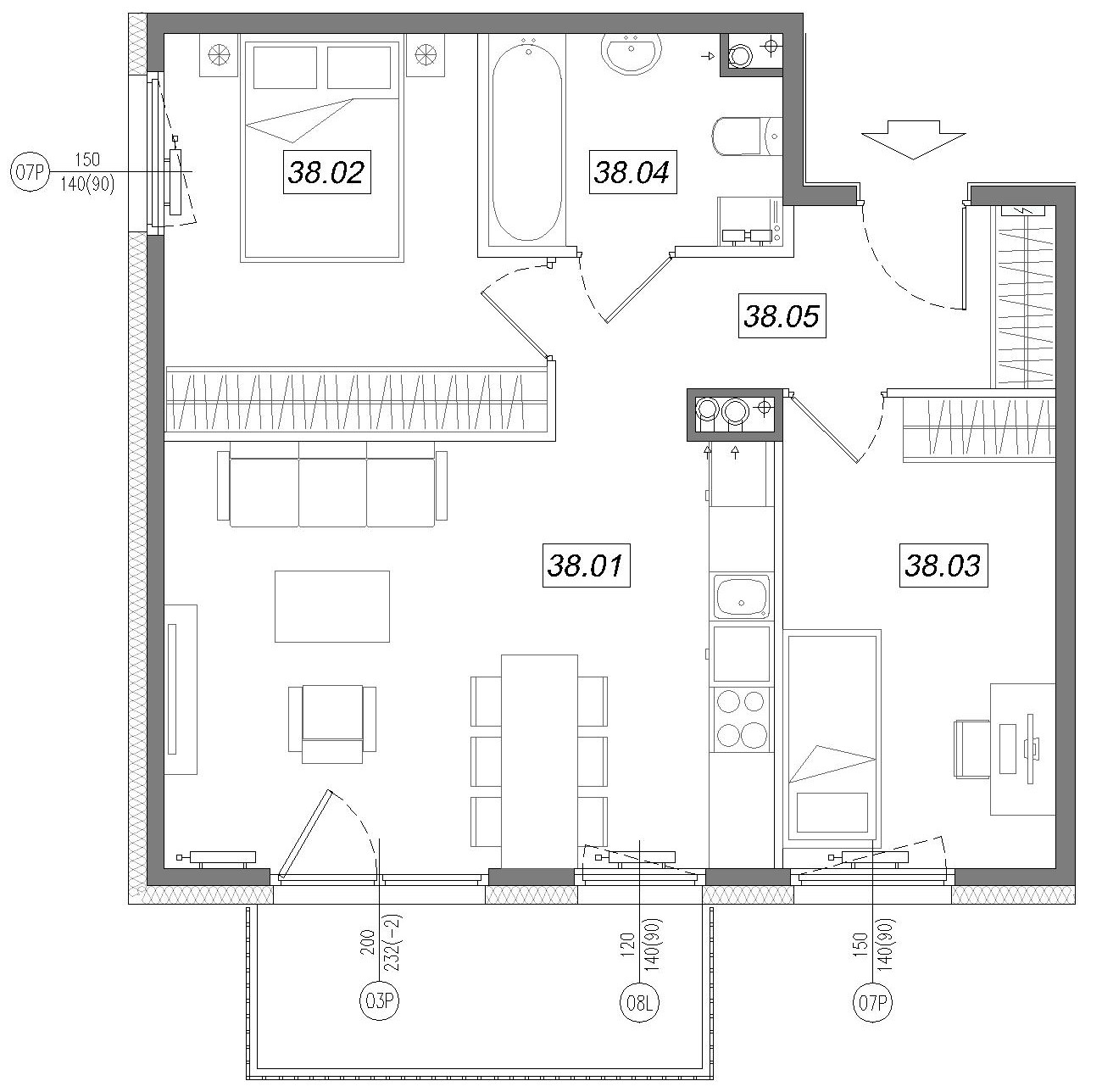 55.81m² Metraż