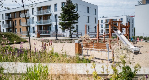 Kameralna inwestycja #NaSwoim to połączenie atutów miejskiego życia ze spokojem i walorami otaczającej natury. Położona przy ul. Ptasiej, wśród terenów zielonych, stwarza idealną przestrzeń do odpoczynku, rekreacji czy spędzania czasu z najbliższymi. Do części wspólnych inwestycji należą rowerownia, ścieżki spacerowe z ławkami oraz urządzenia siłowni plenerowej. Dogodna lokalizacja osiedla w dzielnicy Chełm, gwarantuje łatwy dostęp do centrum Gdańska, oddalonego o zaledwie trzy kilometry.